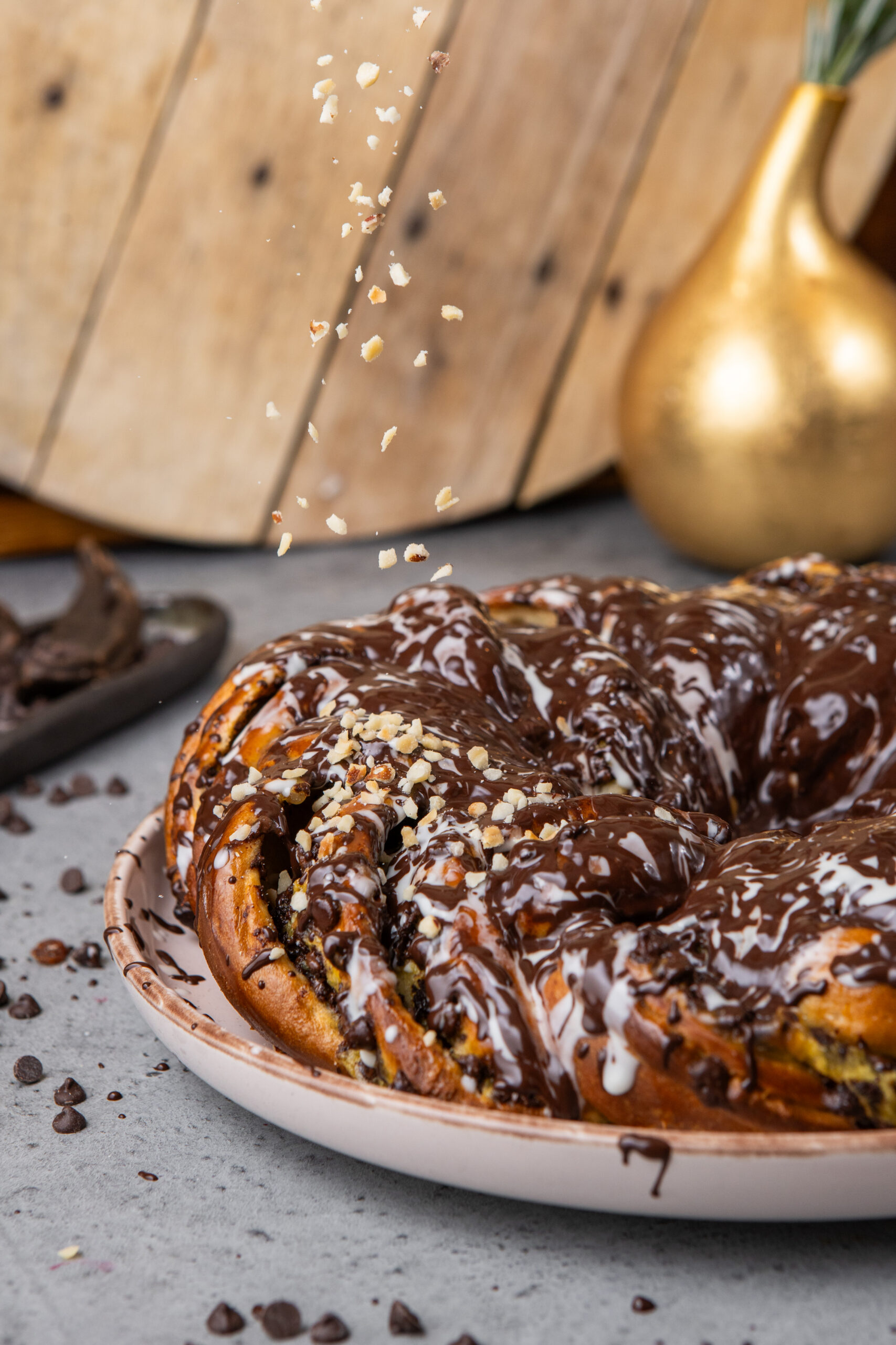 Chocolate twist16.00 € – 32.00 €Price range: 16.00 € through 32.00 € Classic twist with vanilla cream, cinnamon and lots of chocolate. Inside of the twist is dark chocolate, covered with white chocolate glaze. Decorated with hazelnuts. Size Choose an option0,8 kg1,6 kgClear Add to cart Back to shop Related products Chicken fillet twist with feta and spinach 16.00 € – 32.00 €Price range: 16.00 € through 32.00 € Select options This product has multiple variants. The options may be chosen on the product page Read more Quiche with mushrooms 0,8 kg 25.00 € Add to cart Read more Cowberry-marzipan twist 16.00 € – 32.00 €Price range: 16.00 € through 32.00 € Select options This product has multiple variants. The options may be chosen on the product page Read more Ham and cheese twist 16.00 € – 32.00 €Price range: 16.00 € through 32.00 € Select options This product has multiple variants. The options may be chosen on the product page Read more
