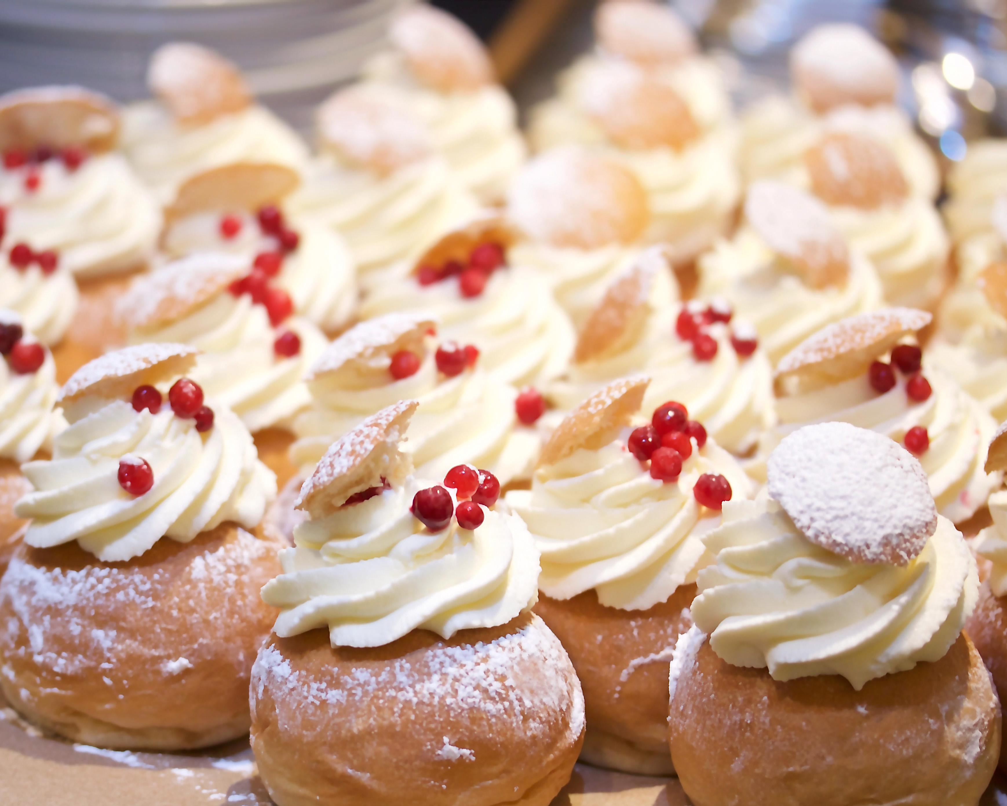 Buns with a whipped cream and cranberry jam.