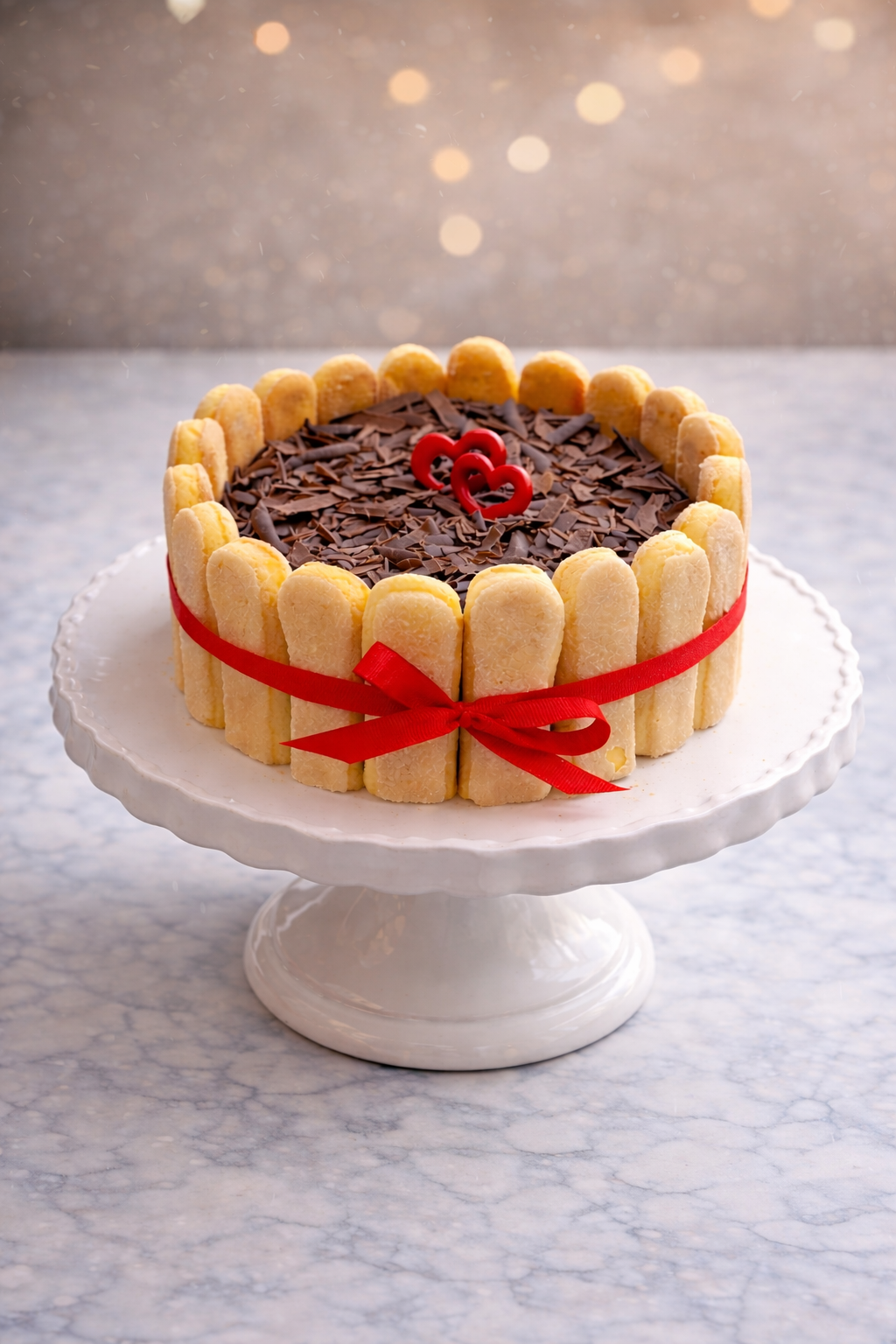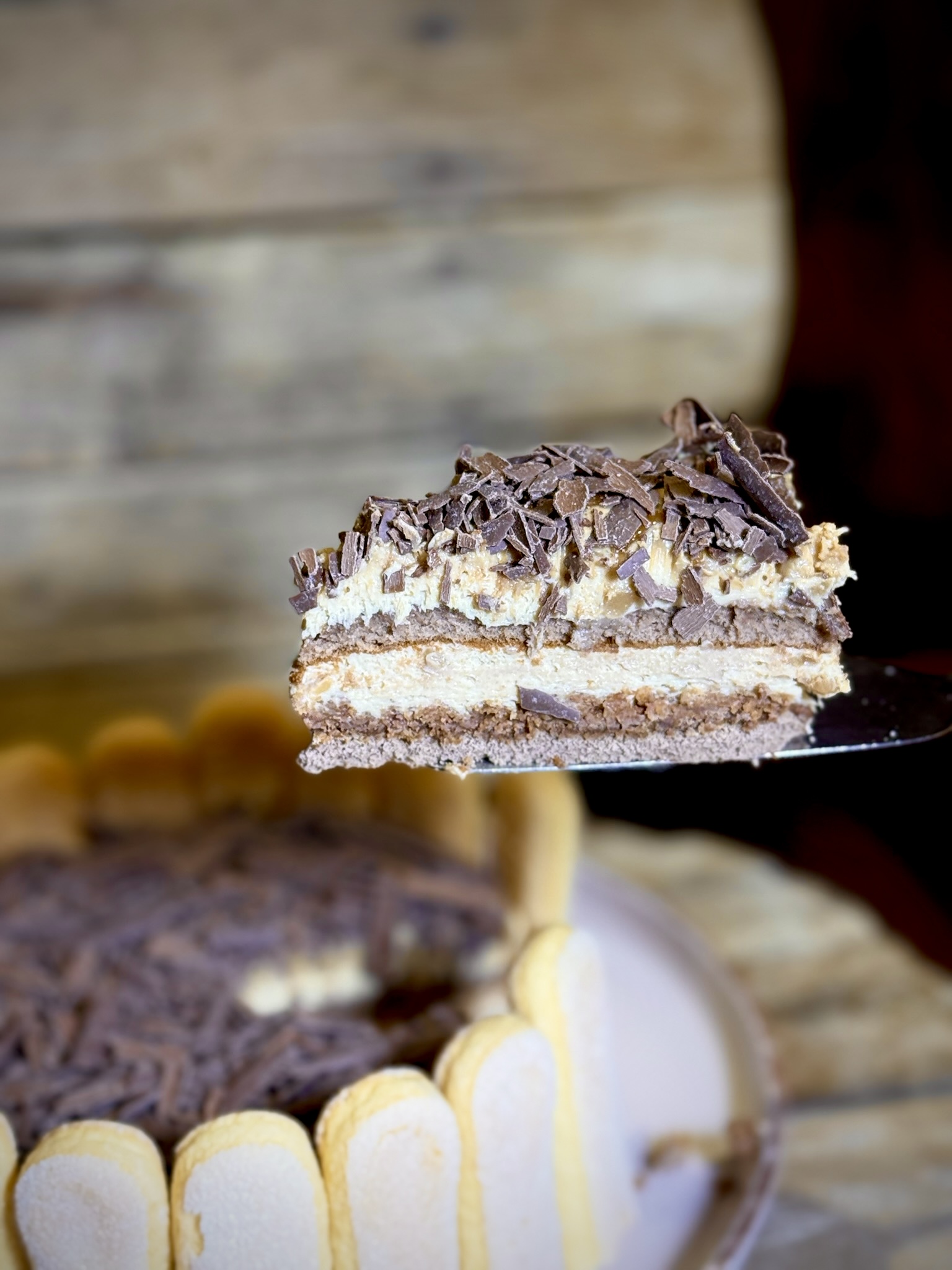 Karamelline toorjuustukreem iirisetükkidega, pruun biskviit, šokolaadi-vahvli krõbekiht, karamelli-valge šokolaadiglasuur, kaunistatud šokolaadipuiste ja savoiardi küpsistega.
